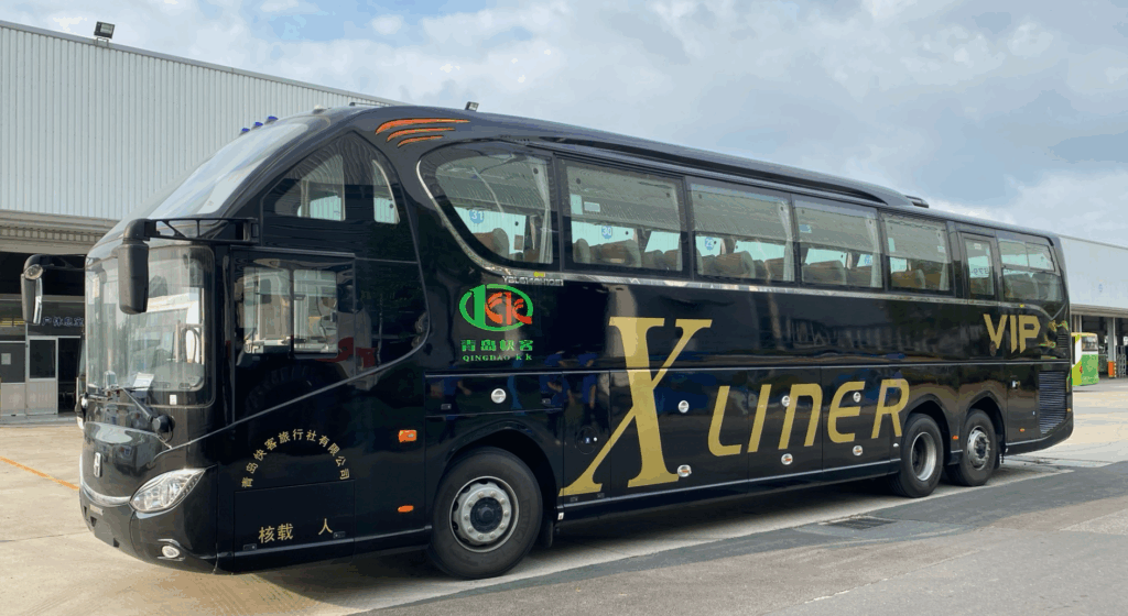26 | 乘客座椅 Passenger seat | 55 seats, high backrest adjustable B1 type seats(adjust backrest, without lateral movement and pedal)USB charger for each seat, pocket for each seat,seat belt for every seat(3 point seat belts for front row 4 seats and 1 seat in the middle of rear row , other seats with two point seat belts) 55座高靠背可调节B1型座椅(靠背前后可调,不可横移,不带脚蹬),USB接口在座椅下,座椅后带布袋,全车座椅配安全带(前排4个座椅和最后一排中间1个座椅为三点式安全带,其余为两点式安全带) | |